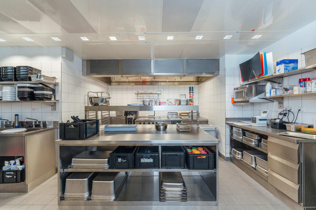 - In der Küche regelt ein KG TOP 2520 (12500 m³/h) die Lüftung für die Spülküche, den Front-Cooking-Bereich sowie die Hauptküche – mit individueller Anpassung an die jeweiligen Arbeitsbereiche.