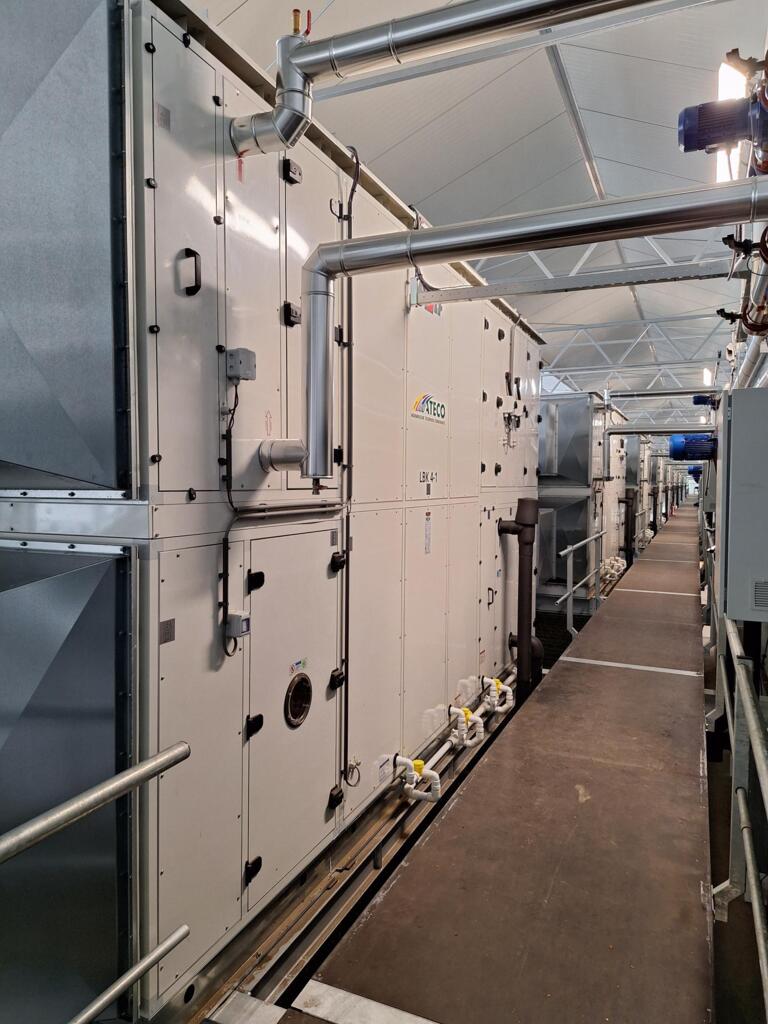Mit 9 großen KG Flex Lüftungsgeräten und 13 Umlufteinheiten (Gesamtkapazität: 290.000 m³/h) wurde ein exakt gesteuertes Klima geschaffen.